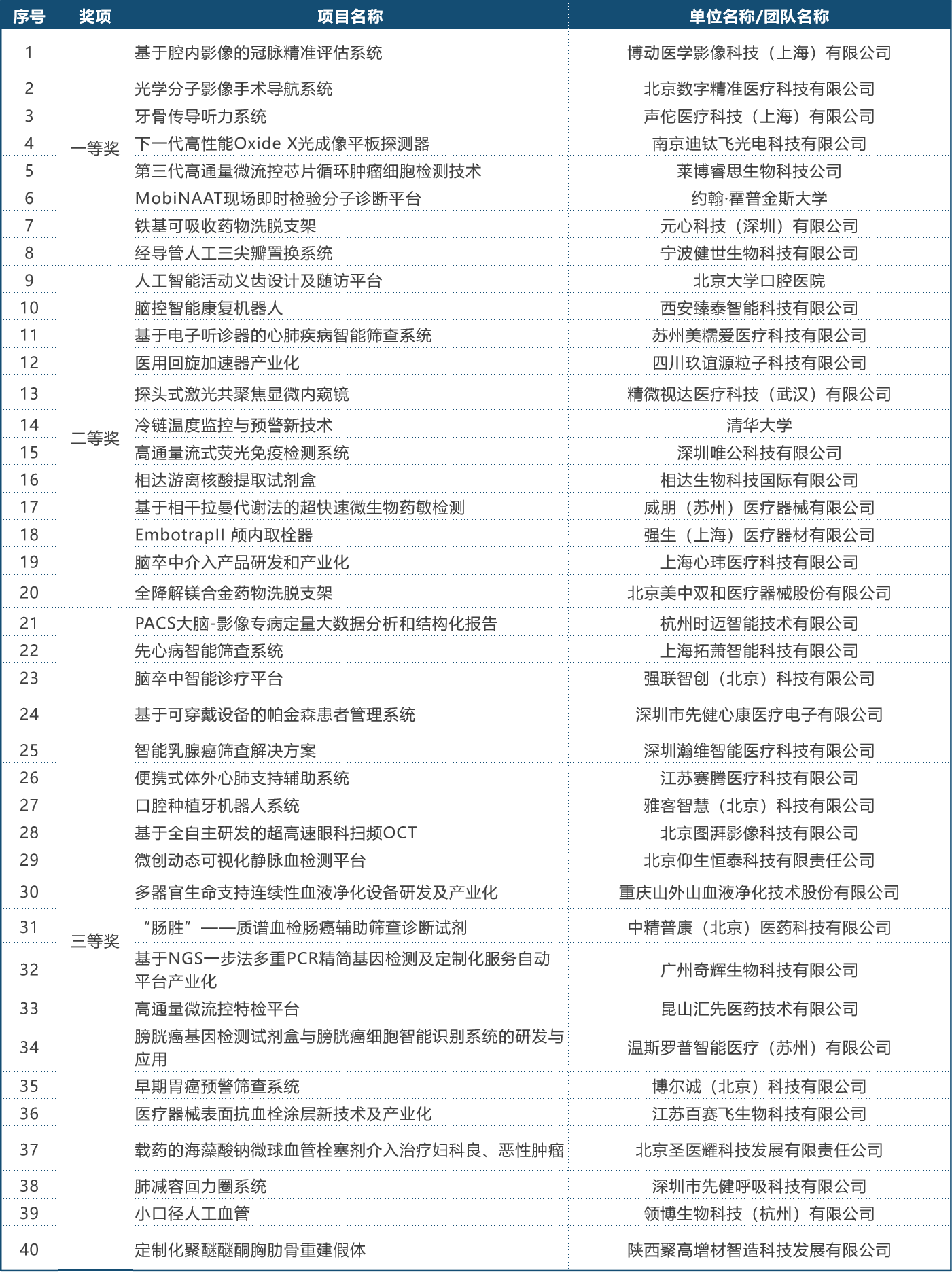 医疗器械创新网网: 历届决赛获奖名单